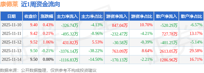 资金流向数据方面,本周康德莱主力资金合计净流出4883.21万元,游资资金合计净流入1176.95万元,散户资金合计净流入3706.26万元。本周资金流向一览见下表: