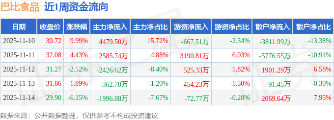 资金流向数据方面,本周巴比食品主力资金合计净流入2278.97万元,游资资金合计净流入3430.09万元,散户资金合计净流出5709.06万元。本周资金流向一览见下表: