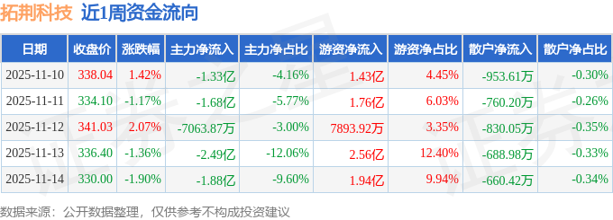 资金流向数据方面,本周拓荆科技主力资金合计净流出8.09亿元,游资资金合计净流入8.48亿元,散户资金合计净流出3893.26万元。本周资金流向一览见下表: