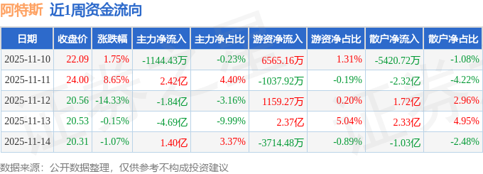 资金流向数据方面,本周阿特斯主力资金合计净流出2.82亿元,游资资金合计净流入2.67亿元,散户资金合计净流入1560.96万元。本周资金流向一览见下表: