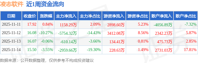 资金流向数据方面,本周凌志软件主力资金合计净流出8165.82万元,游资资金合计净流入6673.72万元,散户资金合计净流入1492.11万元。本周资金流向一览见下表:
