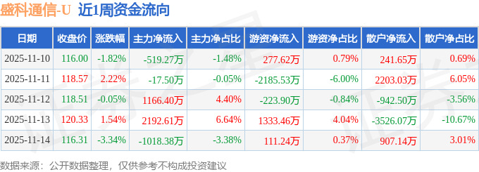 资金流向数据方面,本周盛科通信主力资金合计净流入1803.87万元,游资资金合计净流出687.11万元,散户资金合计净流出1116.75万元。本周资金流向一览见下表:
