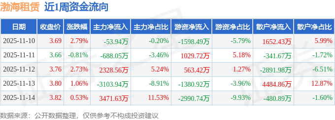 资金流向数据方面,本周渤海租赁主力资金合计净流入1954.26万元,游资资金合计净流出4377.01万元,散户资金合计净流入2422.75万元。本周资金流向一览见下表: