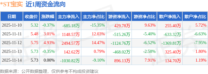沪深股通持股方面,截止2025年11月14日收盘,*ST宝实深股通持股数为52.15万股,占流通股比为5.0%。