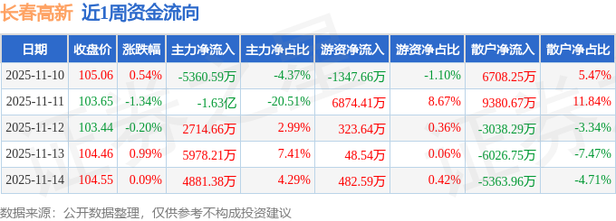 资金流向数据方面,本周长春高新主力资金合计净流出8041.42万元,游资资金合计净流入6381.52万元,散户资金合计净流入1659.91万元。本周资金流向一览见下表: