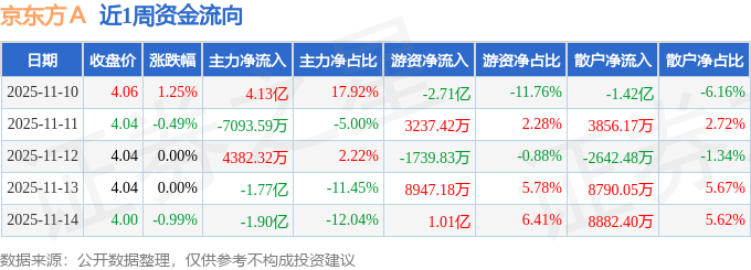 资金流向数据方面,本周京东方A主力资金合计净流入1865.98万元,游资资金合计净流出6544.25万元,散户资金合计净流入4678.27万元。本周资金流向一览见下表: