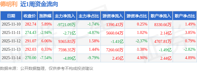 资金流向数据方面,本周德明利主力资金合计净流出6.87亿元,游资资金合计净流入2.47亿元,散户资金合计净流入4.4亿元。本周资金流向一览见下表: