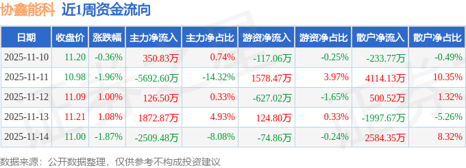 资金流向数据方面,本周协鑫能科主力资金合计净流出5851.89万元,游资资金合计净流入884.33万元,散户资金合计净流入4967.56万元。本周资金流向一览见下表: