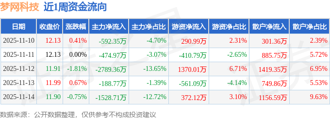 资金流向数据方面,本周梦网科技主力资金合计净流出5574.15万元,游资资金合计净流入1061.24万元,散户资金合计净流入4512.91万元。本周资金流向一览见下表: