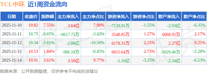 沪深股通持股方面,截止2025年11月14日收盘,TCL中环深股通持股数为1.38亿股,占流通股比为340.0%。