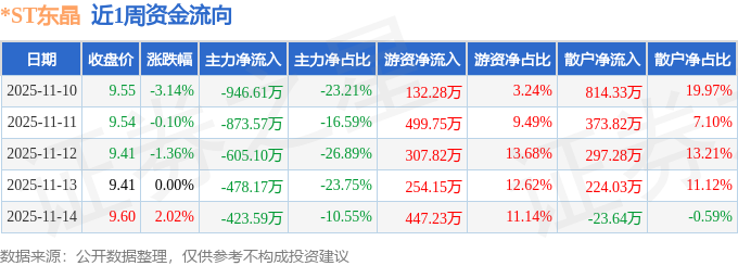 证券之星消息,截至2025年11月14日收盘,*ST东晶(002199)报收于9.6元,较上周的9.86元下跌2.64%。本周,*ST东晶11月10日盘中最高价报9.8元。11月11日盘中最低价报9.29元。*ST东晶当前最新总市值23.37亿元,在元件板块市值排名57/57,在两市A股市值排名5016/5165。
