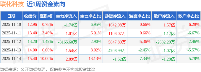 资金流向数据方面,本周联化科技主力资金合计净流入3.39亿元,游资资金合计净流出1.23亿元,散户资金合计净流出2.16亿元。本周资金流向一览见下表: