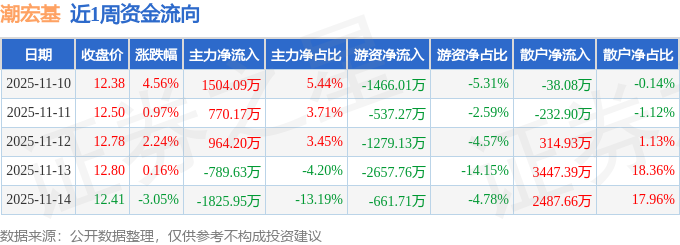 资金流向数据方面,本周潮宏基主力资金合计净流入622.89万元,游资资金合计净流出6601.88万元,散户资金合计净流入5978.99万元。本周资金流向一览见下表: