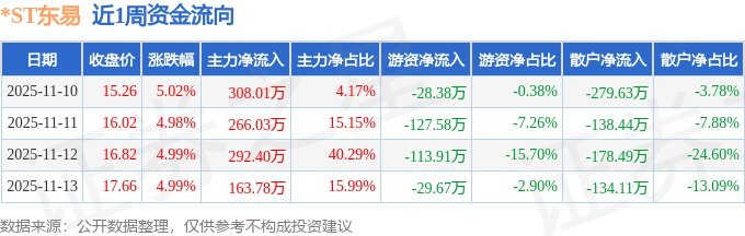资金流向数据方面,本周*ST东易主力资金合计净流入1030.21万元,游资资金合计净流出299.54万元,散户资金合计净流出730.68万元。本周资金流向一览见下表: