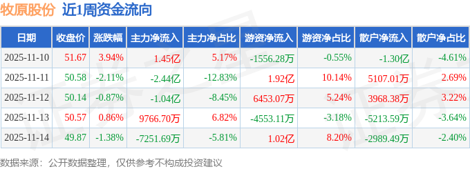 沪深股通持股方面,截止2025年11月14日收盘,牧原股份深股通持股数为1.62亿股,占流通股比为424.0%。