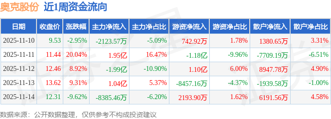 资金流向数据方面,本周奥克股份主力资金合计净流出528.86万元,游资资金合计净流出6342.36万元,散户资金合计净流入6871.22万元。本周资金流向一览见下表: