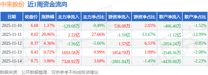 资金流向数据方面,本周中来股份主力资金合计净流入1.74亿元,游资资金合计净流入4232.99万元,散户资金合计净流出2.17亿元。本周资金流向一览见下表: