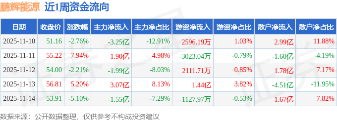 沪深股通持股方面,截止2025年11月14日收盘,鹏辉能源深股通持股数为408.16万股,占流通股比为101.0%。
