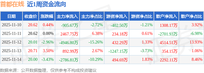 资金流向数据方面,本周首都在线主力资金合计净流出5278.55万元,游资资金合计净流出488.47万元,散户资金合计净流入5767.02万元。本周资金流向一览见下表:
