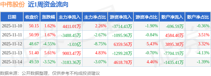 资金流向数据方面,本周中伟股份主力资金合计净流出3512.26万元,游资资金合计净流入4868.67万元,散户资金合计净流出1356.41万元。本周资金流向一览见下表: