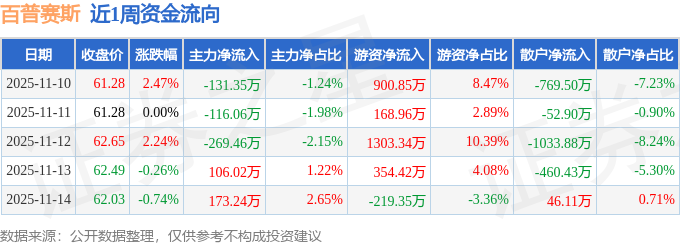资金流向数据方面,本周百普赛斯主力资金合计净流出237.62万元,游资资金合计净流入2508.23万元,散户资金合计净流出2270.61万元。本周资金流向一览见下表: