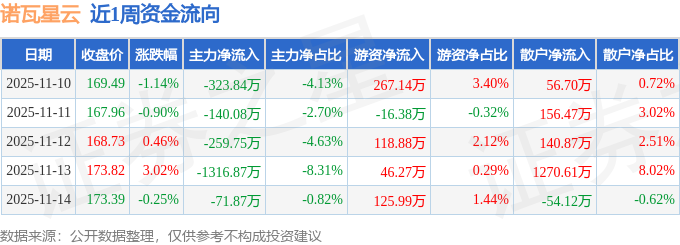 资金流向数据方面,本周诺瓦星云主力资金合计净流出2112.42万元,游资资金合计净流入541.88万元,散户资金合计净流入1570.53万元。本周资金流向一览见下表: