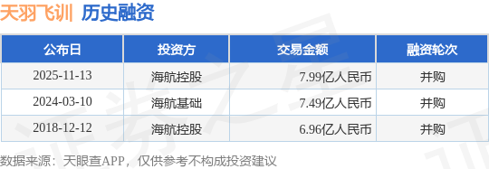 证券之星消息,根据天眼查APP于11月13日公布的信息整理,海南天羽飞行训练有限公司并购融资,融资额7.99亿人民币,参与投资的机构包括海航控股,投后估值7.99亿人民币。