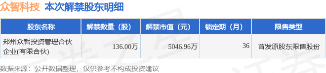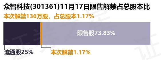 证券之星消息,根据市场公开信息整理,众智科技(301361)于11月17日将有136.0万股限售股份解禁,为公司首发原股东限售股份,占公司总股本1.17%。(本次数据根据历史公告整理得出,实际情况以上市公司最新公告为准)本次解禁后,公司还有8589.2万股限售股份,占总股本73.83%。具体如下图所示: