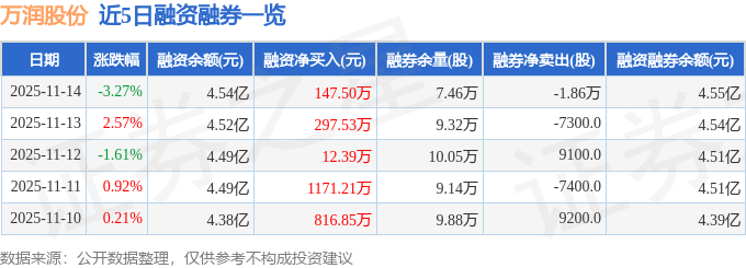 万润股份融资融券信息显示,融资方面,当日融资买入3409.24万元,融资偿还3261.74万元,融资净买入147.5万元,连续3日净买入累计457.42万元。融券方面,融券卖出500.0股,融券偿还1.91万股,融券余量7.46万股,融券余额103.84万元。融资融券余额4.55亿元。