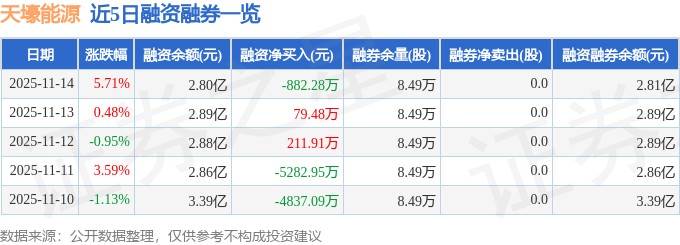 证券之星消息,截至2025年11月14日收盘,天壕能源(300332)报收于6.67元,上涨5.71%,换手率9.39%,成交量77.89万手,成交额5.11亿元。
