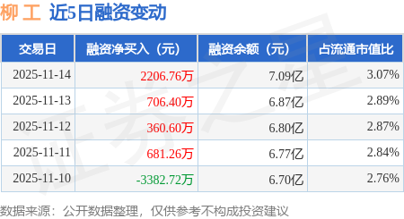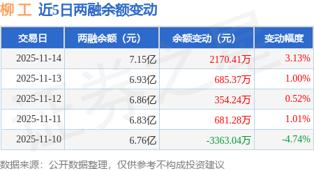 证券之星消息,11月14日,柳 工(000528)融资买入5614.89万元,融资偿还3408.13万元,融资净买入2206.76万元,融资余额7.09亿元,近3个交易日已连续净买入累计3273.76万元,近20个交易日中有11个交易日出现融资净买入。