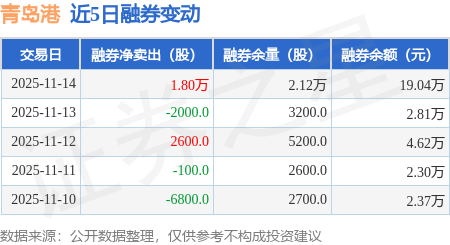 证券之星消息,11月14日,青岛港(601298)融资买入2216.18万元,融资偿还1838.83万元,融资净买入377.35万元,融资余额9650.81万元。