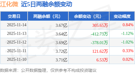 证券之星消息,11月14日,江化微(603078)融资买入1694.28万元,融资偿还1388.64万元,融资净买入305.65万元,融资余额3.67亿元。