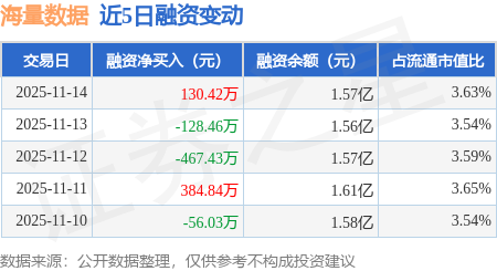 证券之星消息,11月14日,海量数据(603138)融资买入516.33万元,融资偿还385.91万元,融资净买入130.42万元,融资余额1.57亿元,近20个交易日中有11个交易日出现融资净买入。