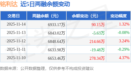 证券之星消息,11月14日,铭利达(301268)融资买入620.51万元,融资偿还531.37万元,融资净买入89.14万元,融资余额6859.42万元。