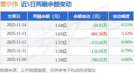 证券之星消息,11月14日,雷尔伟(301016)融资买入424.57万元,融资偿还459.4万元,融资净卖出34.83万元,融资余额1.64亿元,近20个交易日中有12个交易日出现融资净买入。