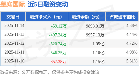 证券之星消息,11月14日,皇庭国际(000056)融资买入250.12万元,融资偿还309.24万元,融资净卖出59.12万元,融资余额9898.01万元。