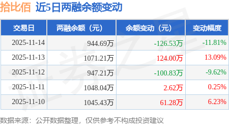 证券之星消息,11月14日,拾比佰(920768)融资买入152.36万元,融资偿还278.89万元,融资净卖出126.53万元,融资余额944.69万元。