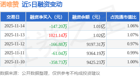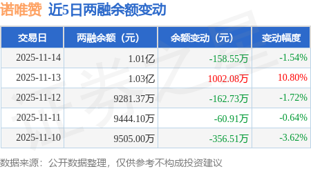 证券之星消息,11月14日,诺唯赞(688105)融资买入720.8万元,融资偿还868.0万元,融资净卖出147.2万元,融资余额1.01亿元。