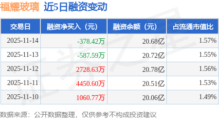 证券之星消息,11月14日,福耀玻璃(600660)融资买入3224.35万元,融资偿还3602.77万元,融资净卖出378.42万元,融资余额20.68亿元。