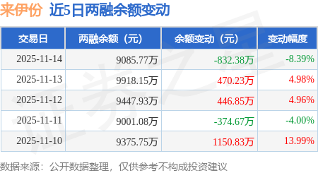 证券之星消息,11月14日,来伊份(603777)融资买入1659.12万元,融资偿还2491.51万元,融资净卖出832.38万元,融资余额9085.77万元。