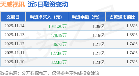证券之星消息,11月14日,天威视讯(002238)融资买入818.27万元,融资偿还1859.46万元,融资净卖出1041.2万元,融资余额1.06亿元。