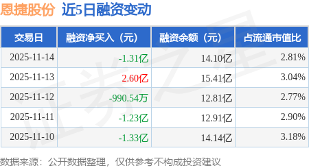 证券之星消息,11月14日,恩捷股份(002812)融资买入4.99亿元,融资偿还6.3亿元,融资净卖出1.31亿元,融资余额14.1亿元,近20个交易日中有11个交易日出现融资净买入。