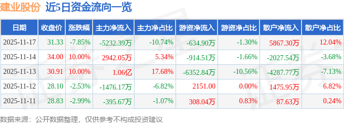 11月17日的资金流向数据方面,主力资金净流出5232.39万元,占总成交额10.74%,游资资金净流出634.9万元,占总成交额1.3%,散户资金净流入5867.3万元,占总成交额12.04%。