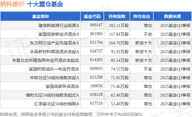 根据2025基金Q3季报公募基金重仓股数据,重仓该股的公募基金共50家,其中持有数量最多的公募基金为建信基金的建信新能源行业股票A。建信新能源行业股票A目前规模为31.96亿元,最新净值2.0181(11月14日),较上一交易日下跌1.57%,近一年上涨31.57%。该公募基金现任基金经理为陶灿 田元泉。陶灿在任的基金产品包括:建信改革红利股票A,管理时间为2014年5月14日至今,期间收益率为398.5%;建信高股息主题股票,管理时间为2020年1月21日至今,期间收益率为90.84%;建信兴润一年持有混合,管理时间为2021年8月24日至今,期间收益率为-21.37%。田元泉在任的基金产品包括:建信智能汽车股票,管理时间为2021年9月10日至今,期间收益率为-2.64%;建信研究精选混合A,管理时间为2024年6月12日至今,期间收益率为51.39%;建信稳定得利债券A,管理时间为2025年9月5日至今,期间收益率为1.08%。