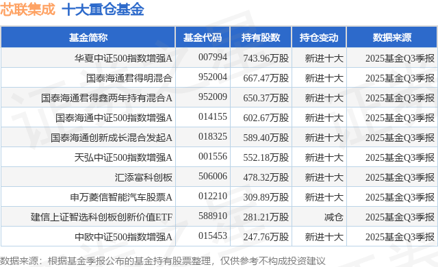 根据2025基金Q3季报公募基金重仓股数据,重仓该股的公募基金共47家,其中持有数量最多的公募基金为华夏基金的华夏中证500指数增强A。华夏中证500指数增强A目前规模为33.08亿元,最新净值2.3591(11月14日),较上一交易日下跌1.0%,近一年上涨24.62%。该公募基金现任基金经理为孙蒙。孙蒙在任的基金产品包括:华夏智胜价值成长A,管理时间为2020年3月17日至今,期间收益率为137.17%;华夏安泰对冲策略3个月定开混合,管理时间为2020年6月5日至今,期间收益率为22.53%;华夏中证500指数智选增强A,管理时间为2021年8月11日至今,期间收益率为30.78%。