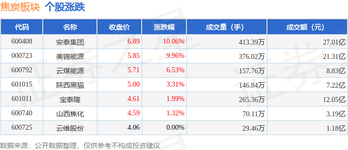 证券之星消息,11月17日焦炭板块较上一交易日上涨5.66%,安泰集团领涨。当日上证指数报收于3972.03,下跌0.46%。深证成指报收于13202.0,下跌0.11%。焦炭板块个股涨跌见下表: