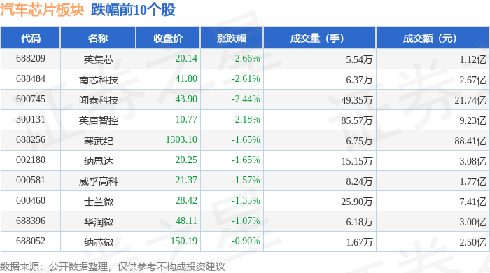 从资金流向上来看,当日汽车芯片板块主力资金净流出5.05亿元,游资资金净流入656.92万元,散户资金净流入4.99亿元。汽车芯片板块个股资金流向见下表: