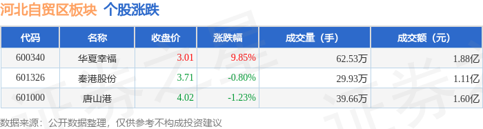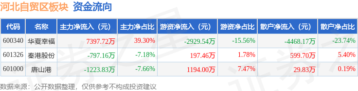 从资金流向上来看,当日河北自贸区板块主力资金净流入5376.73万元,游资资金净流出1538.08万元,散户资金净流出3838.64万元。河北自贸区板块个股资金流向见下表: