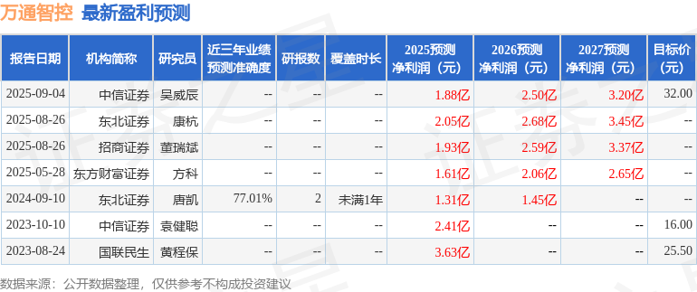 以下是详细的盈利预测信息: